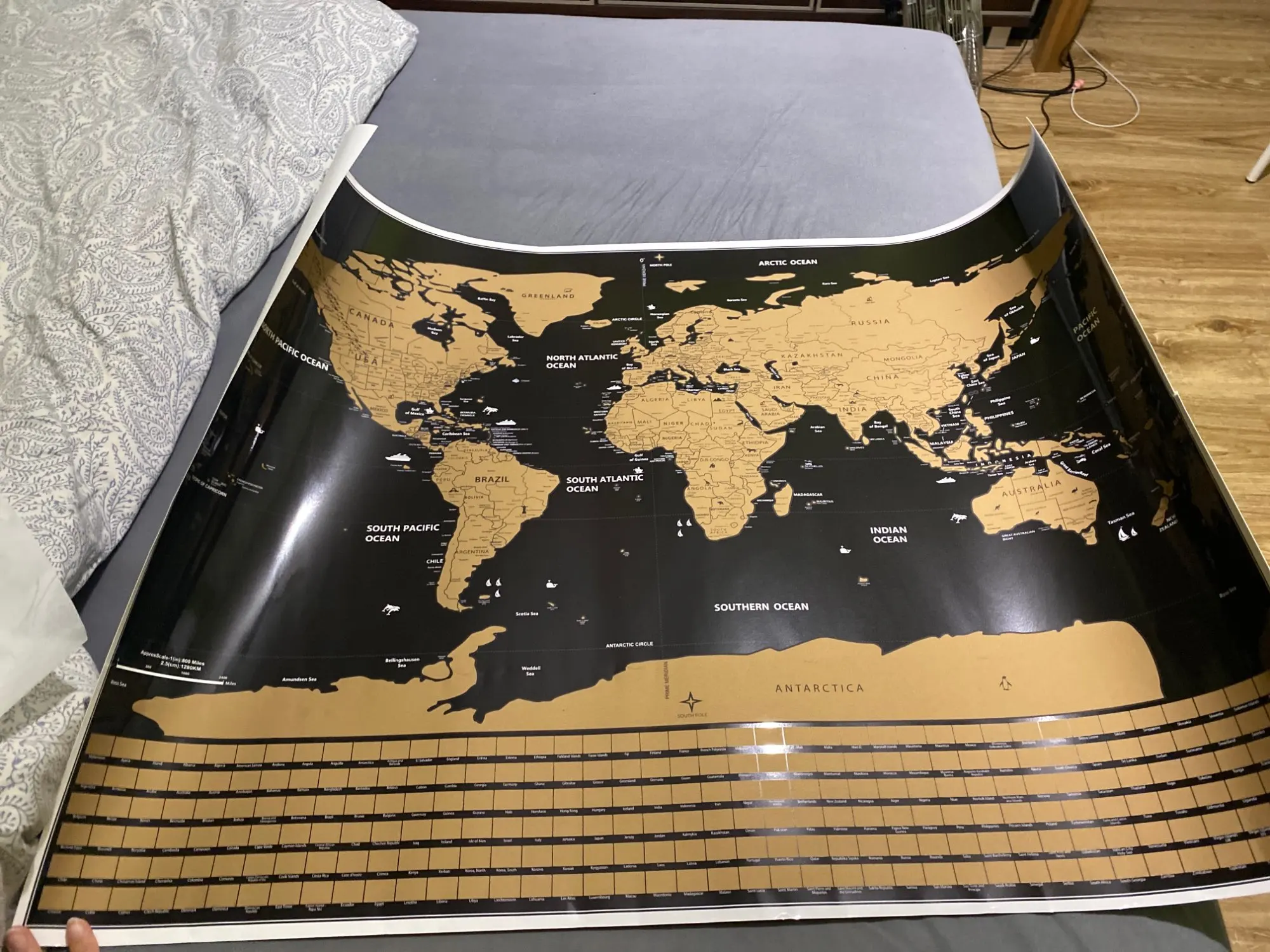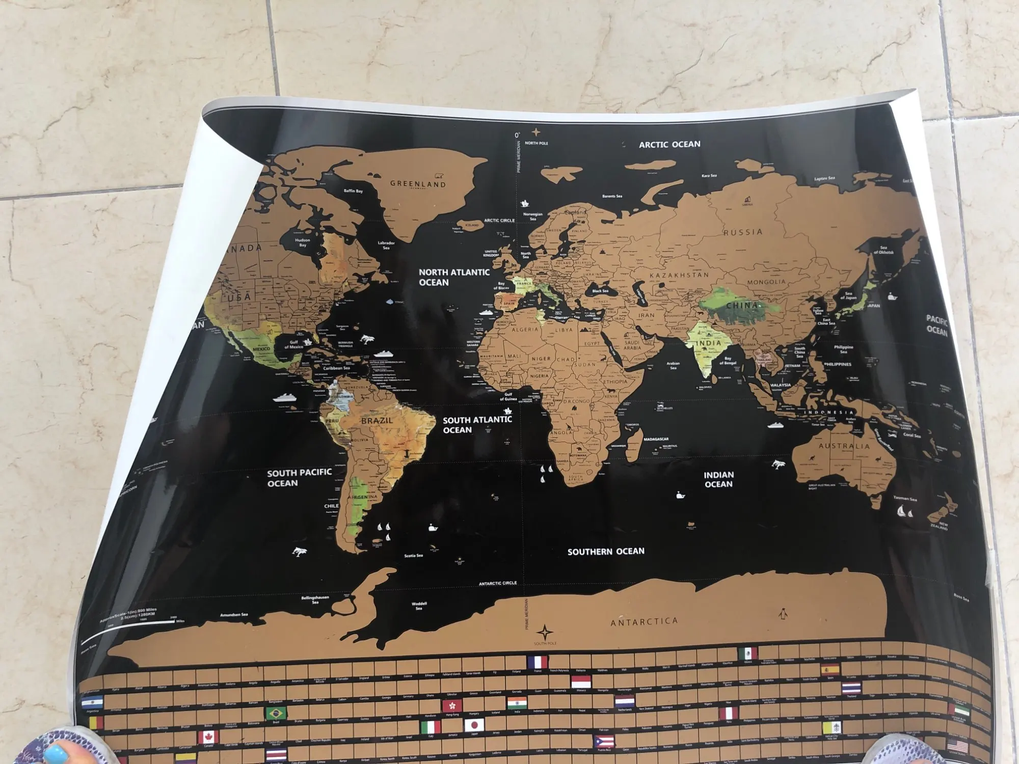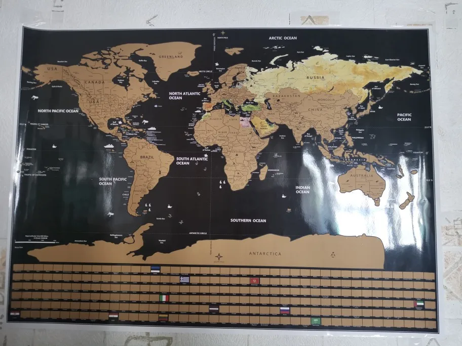 Para os viajantes de carteirinha, aqui está um novo desafio para você: O Mapa de Raspar Pôster Raspadinha do Mundo 82x60cm.